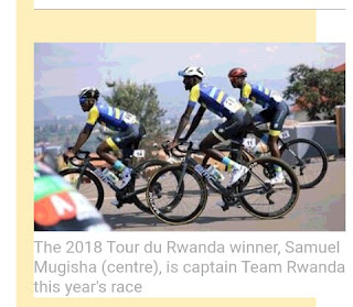 The 2018 Tour du Rwanda winner, Samuel Mugisha (center), is captain Team Rwanda in this year’s race